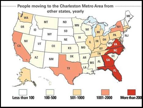 Tri-County Area Population – Approximately, 29,600 people move to The Charleston area each year from other states. Where do they come from?