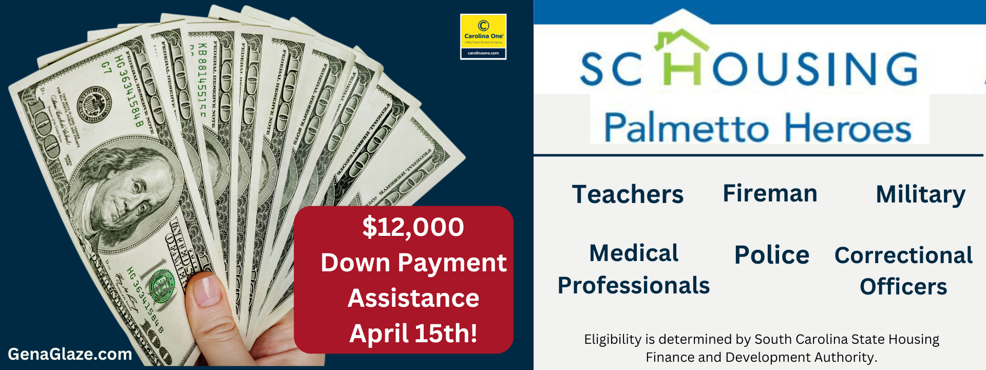 SC Housing is offering $12,000 in down payment assistance along with competitive interest rate loans for Palmetto Heroes! The program is offered to eligible service personnel who provide vital support to South Carolina communities, these include teachers, nurses, law enforcement officers, correctional officers, fire fighters, emergency medical technicians, paramedics, veterans, active-duty military, and National Guard members.