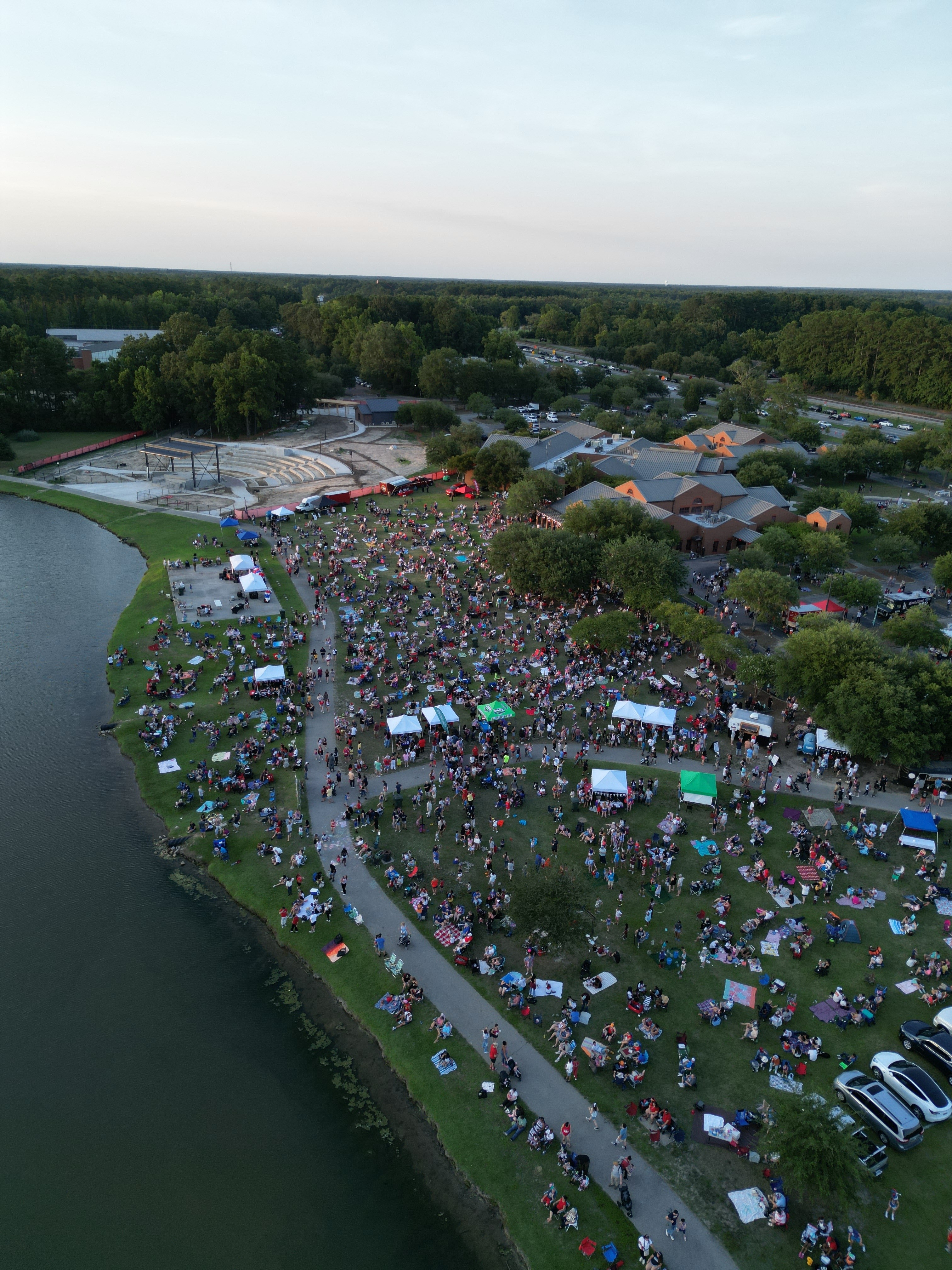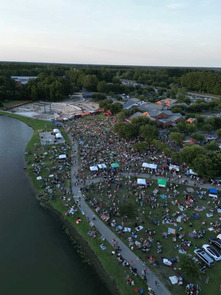 With exciting amenities including a food truck court, eat-in pavilion, stage-front dance floor, public restroom facility, and lakeside views, the Amphitheater encourages people to gather as a community and enjoy a variety of public performances.