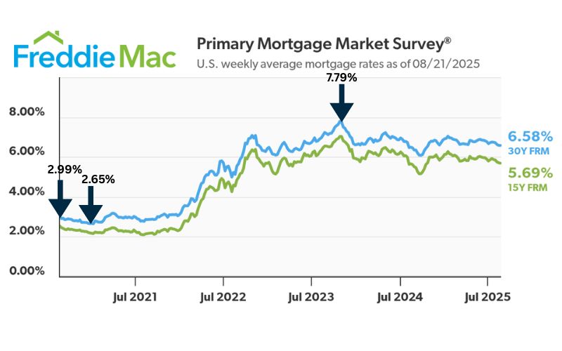 The 30-year fixed mortgage interest rate was 3.5% in January 2020, making the median price of $284,900 very affordable. Mortgage rates went as low as 2.65% in January of 2021 and eventually peaked at approximately 7.79% in October 2023. These low rates spurred a frenzy of buying activity throughout the Pandemic years. Today, rates are hovering around 6.58% per Freddie Mac. Future rate predictions are mixed – only time can truly tell the trajectory. View rates at Freddie Mac