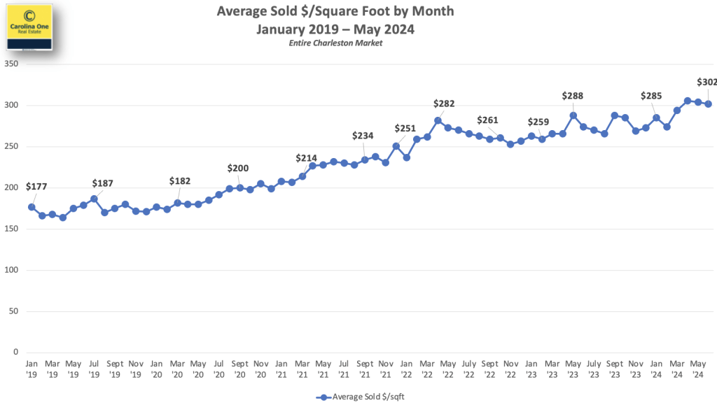 The average price per sqft still remains near an all-time high at approximately $301 /sqft