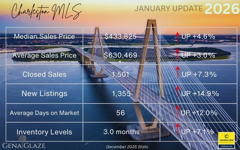 Charleston MLS – 2025 Closed sales were at approximately 5,000 which was about the same as they were in 2024. New listing total for the year came in at 6,012, up just 1% from 2024 and the median sales price was up just 1.3 %.